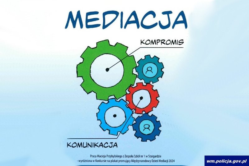 Międzynarodowy Dzień Mediacji został ustanowiony w 2005 roku przez amerykańską organizację Association for Conflict Resolution (ACR). W Polsce Międzynarodowy Dzień Mediacji obchodzony jest od 2008 roku i przypada na trzeci czwartek października – w tym roku jest 16 października. W związku z tym dniem organizowany jest również Tydzień Mediacji, przypadający w tym roku od 13 do 17 października. Jet to coroczna inicjatywa Ministerstwa Sprawiedliwości, której celem jest popularyzacja alternatywnych metod rozwiązywania sporów, ze szczególnym uwzględnieniem mediacji. Swój udział w tym wydarzeniu mają również policjanci.