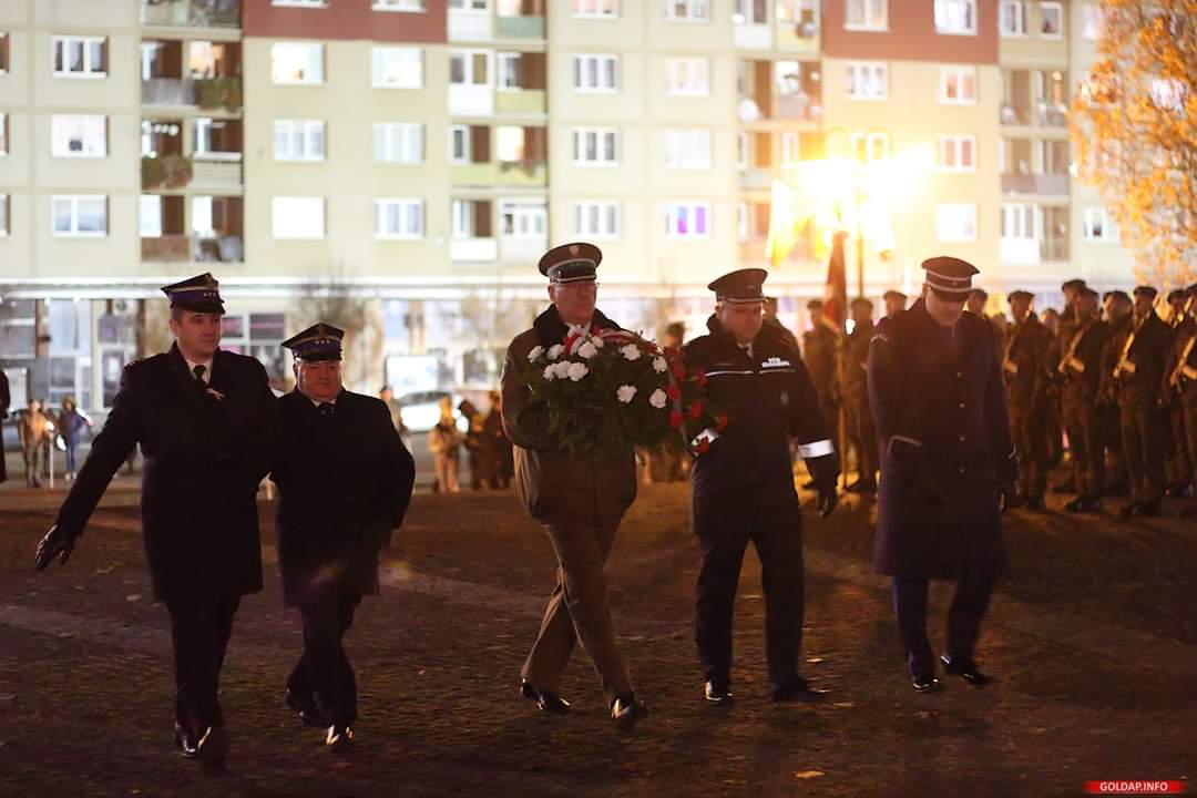 Natomiast Komendant Powiatowy Policji w Gołdapi podinsp. Tomasz Jegliński wziął udział w drugiej części Obchodów Narodowego Święta. Punktualnie o godzinie 18:00 w Kościele Najświętszej Maryi Panny odbyła się msza święta w intencji Ojczyzny. Po liturgii nastąpił przemarsz Kompanii Honorowej oraz pocztów sztandarowych na Plac Zwycięstwa, gdzie po złożeniu meldunków na maszt została podniesiona flaga RP i został odśpiewany hymn państwowy. Po odczytaniu Niepodległościowego Apelu Pamięci, Szef gołdapskich policjantów wspólnie z przedstawicielami innych służb mundurowych złożył kwiaty pod pomnikiem.
