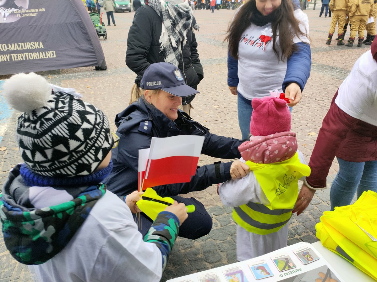 Dzisiaj obchodziliśmy Narodowe Święto Niepodległości. Z tej okazji w Gołdapi odbyły się różne przedsięwzięcia, które miały na celu uczczenie pamięci 106. rocznicy Odzyskania przez Polskę Niepodległości. W dzień w centrum Gołdapi odbyła się trzynasta edycja „sztafety jedenastek” o nazwie „11.11.11.11.14”. Wydarzenie, zorganizowane przez Stowarzyszenie „Partnerstwo Sztuk”, rozpoczęło się o punktualnie o godzinie 11:11. Wśród uczestników sztafety znaleźli się również przedstawiciele gołdapskiej policji z I Zastępcą Komendanta Powiatowego Policji w Gołdapi na czele. Po zakończeniu sportowej części obchodów, w samo południe, odśpiewano hymn państwowy. Ta szczególna forma uczczenia dnia odzyskania przez Polskę Niepodległości stanowi wyjątkowe wydarzenie kulturalne i cieszy się ogromną popularnością wśród mieszkańców Gołdapi.