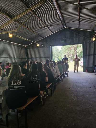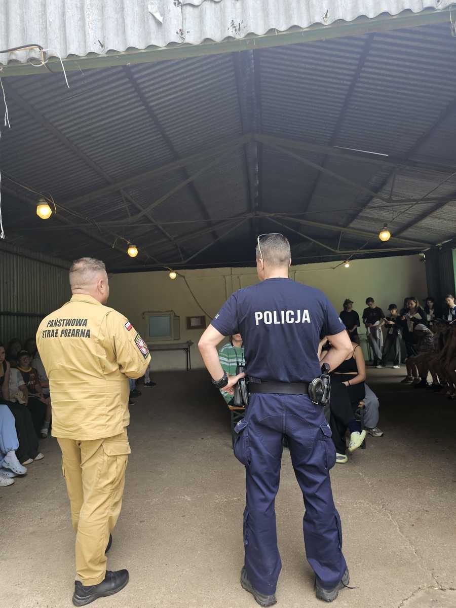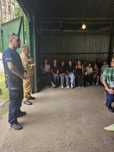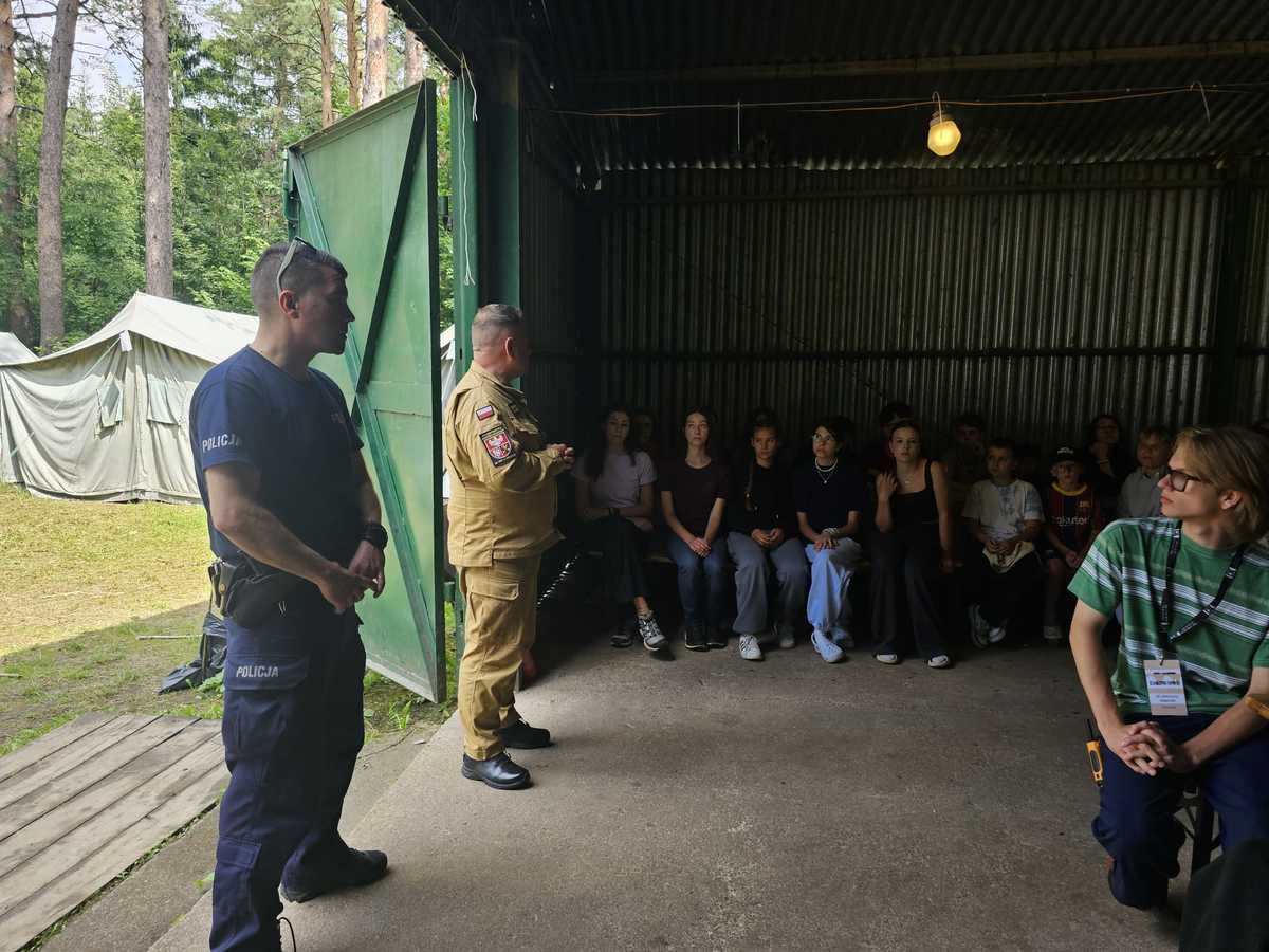 Dzielnicowy Dubeninek wspólnie z funkcjonariuszem Straży Pożarnej spotkali się z uczestnikami kolejnego obozu harcerskiego stacjonującego w Stańczykach. Funkcjonariusze utrzymują bieżący kontakt z komendantami obozów harcerskich, aby zapewnić dzieciom spokojne i bezpieczne wakacje.
