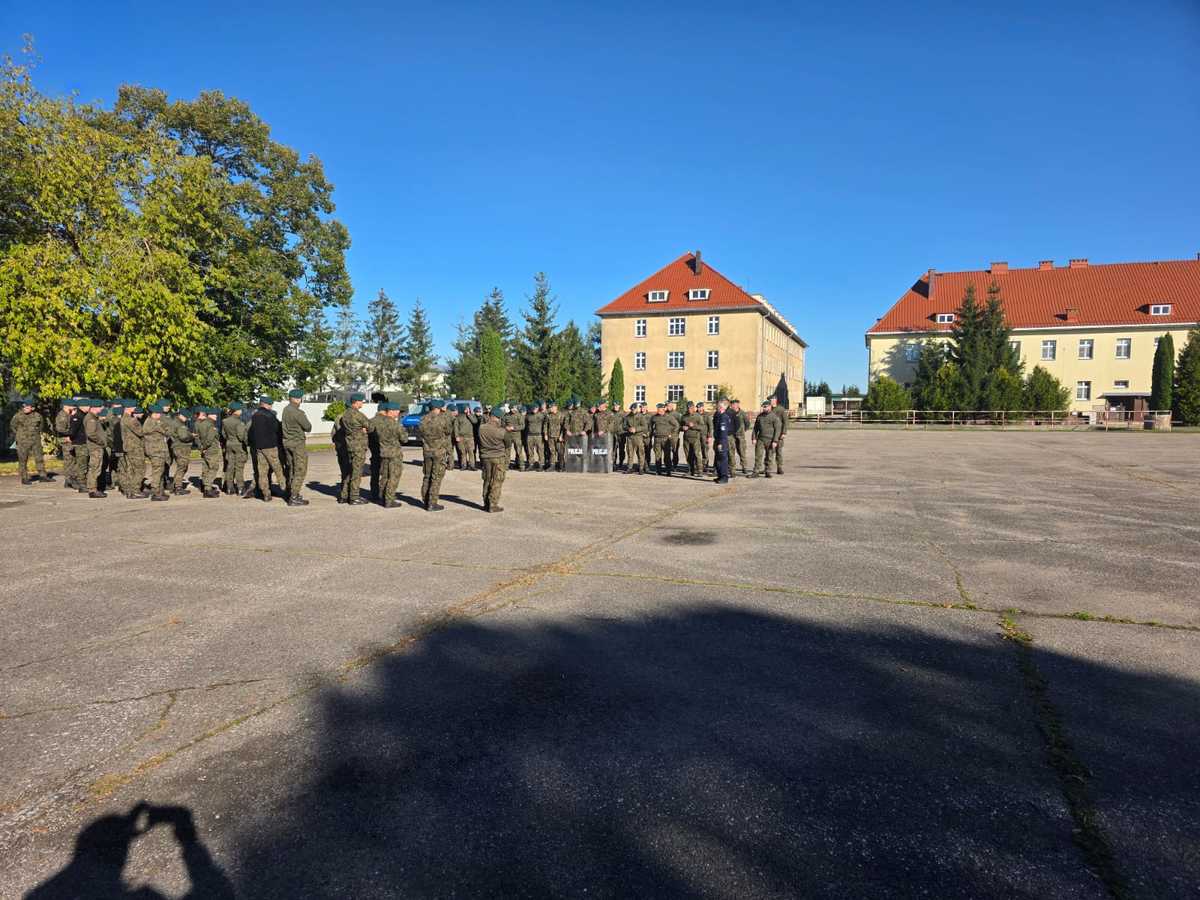 Jedno z takich szkoleń odbyło się w piątek (26.09.2025 r.). Funkcjonariusze zapoznali żołnierzy z zasadami formowania tyraliery policyjnej oraz użycia środków przymusu bezpośredniego. Ćwiczyli z żołnierzami sposoby ochrony przed atakami z użyciem kamieni i noży, operowania w szyku bojowym oraz użycia tarcz i miotaczy gazu. Policjanci omówili zasady działania i przybliżyli sposób wykorzystania strzelby gładkolufowej oraz amunicji niepenetracyjnej.