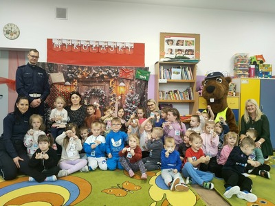 Do przedszkola w Grabowie zawitali niecodzienni goście. Dzieci odwiedzili gołdapscy mundurowi wraz z policyjnym pomocnikiem - sierżantem Gołdapkiem. Funkcjonariusze opowiedzieli najmłodszym o swojej pracy i uczyli dzieci bezpiecznych zachowań. Policjanci przypomnieli o podstawowych przepisach obowiązujących w ruchu drogowym oraz zwrócili uwagę na to, co może być dla nich zagrożeniem.