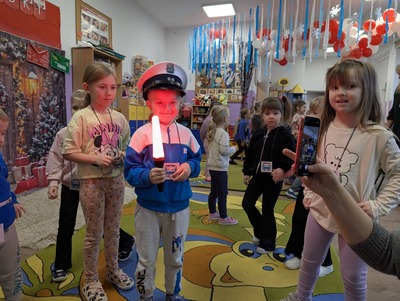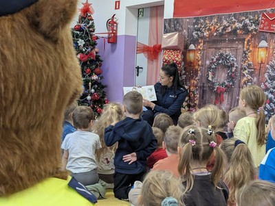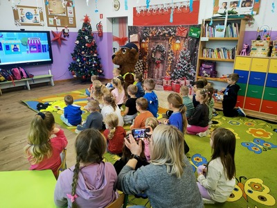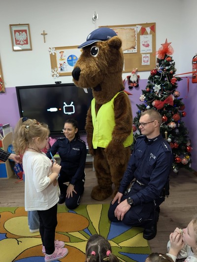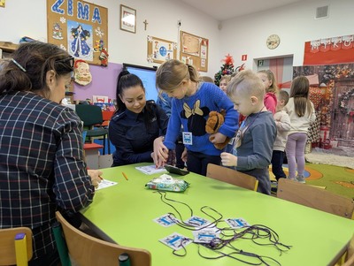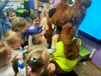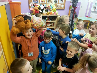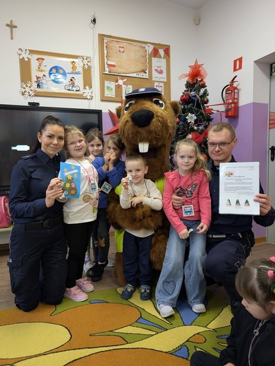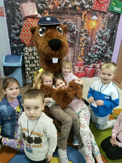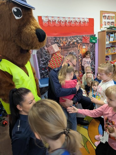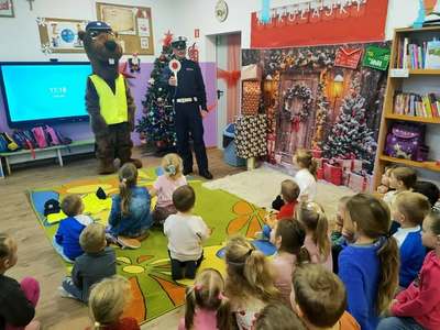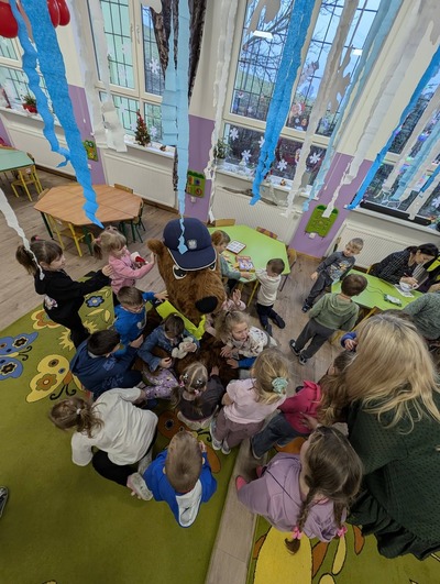 Podczas wizyty dzieci mogły poczuć się jak prawdziwi mali detektywi. Każdy przedszkolak otrzymał policyjną odznakę, a następnie wziął udział w poszukiwaniach Misiaczka Rozrabiaczka, który po tym jak obrabował sklep z cukierkami ukrył się na półkach z zabawkami. Milusińscy mieli również możliwość odbicia swojego paluszka na specjalnej karcie. Te zadania wzbudziły wiele radości i ciekawości.