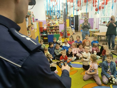 Tata w mundurze - gołdapski policjant przeprowadził lekcję bezpieczeństwa dla najmłodszych