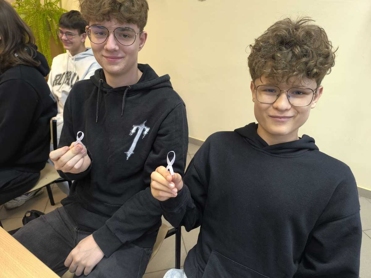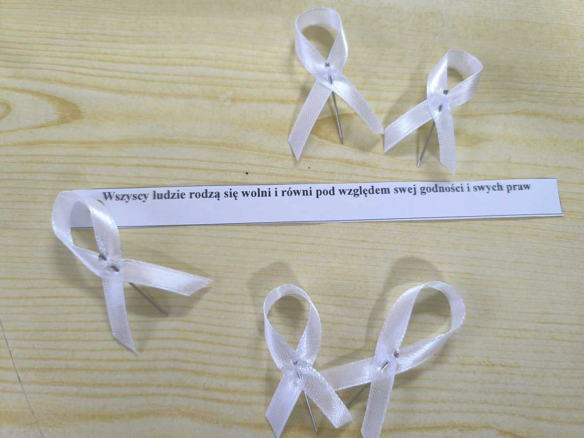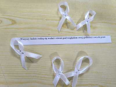 Dodatkowo, w ramach kampanii w szkołach średnich zostały przeprowadzone warsztaty pn. "Przemoc - argument słabości". Warsztaty te dotyczyły różnorodności kulturowej i przeciwdziałania mowie nienawiści. O przyczynach i konsekwencjach przestępstw z nienawiści mówiła Pani psycholog - Agnieszka Zarzycka. Bezpośrednio po spotkaniu uczniowie szkół średnich, pracownicy socjalni, policjanci, przedstawiciele Zespołów Interdyscyplinarnych oraz członkowie lokalnych stowarzyszeń na boisku szkolnym utworzyli "żywy" symbol białej wstążki, a następnie wypuścili białe balony wypełnione helem, do których doczepione zostały fundamentalne dla każdego człowieka wartości zawarte w Powszechnej Deklaracji Praw Człowieka.