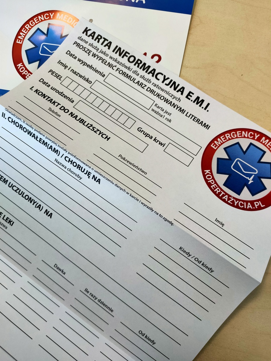 Specjalna, plastikowa koperta wyposażona w magnes, którą należy umieścić w widocznym miejscu na lodówce, powinna zawierać informacje o chorobach, przyjmowanych lekach czy uczuleniach. Ważne jest też, aby zawierała dane osobowe oraz kontakt do osób najbliższych. Dysponujący kopertą policjanci i medycy natychmiast uzyskują podstawowe dane o osobie oraz informacje o jej stanie zdrowia.