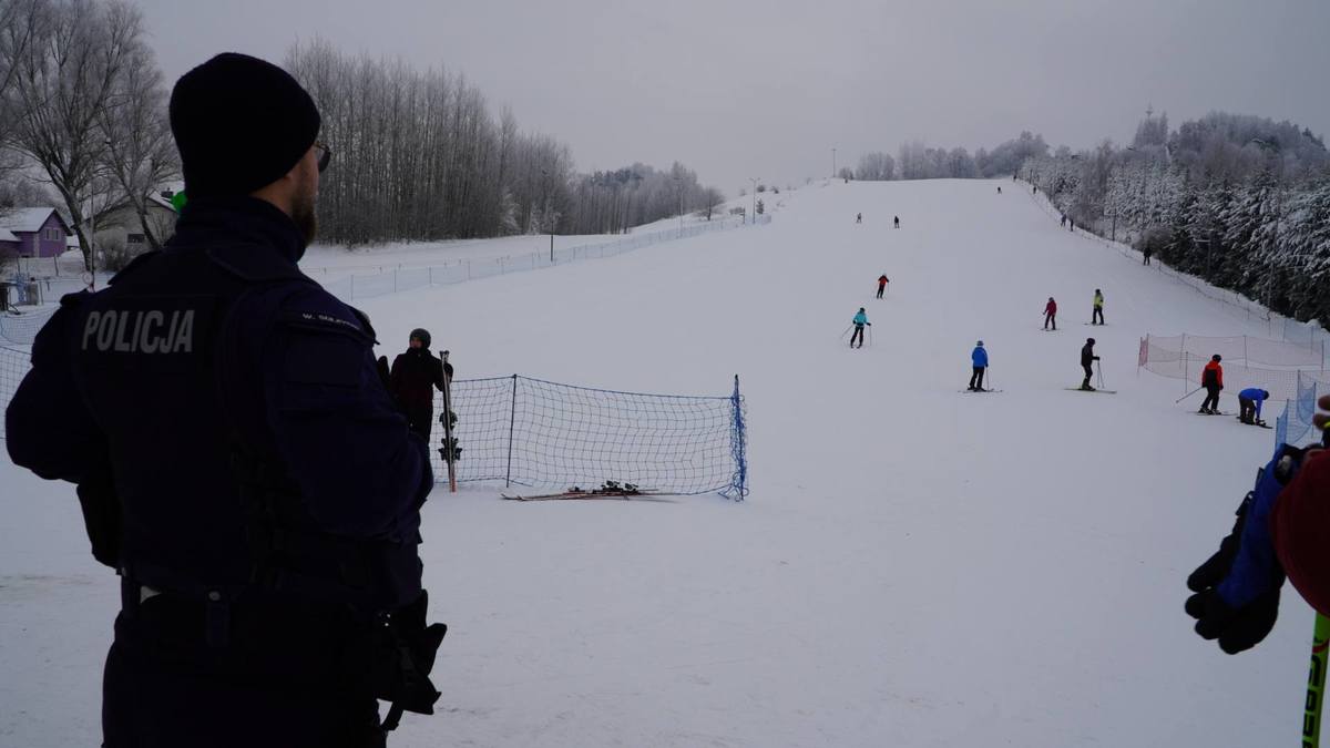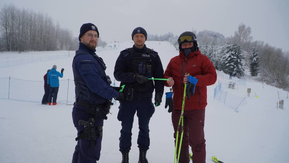Gołdapscy policjanci promują ogólnopolską kampanię „Kręci mnie bezpieczeństwo w zimie” na stoku Piękna Góra. Funkcjonariusze przypominają o podstawowych zasadach obowiązujących na stokach, rozdają odblaski i zachęcają do wzięcia udziału w konkursie „Zimowy dekalog”.