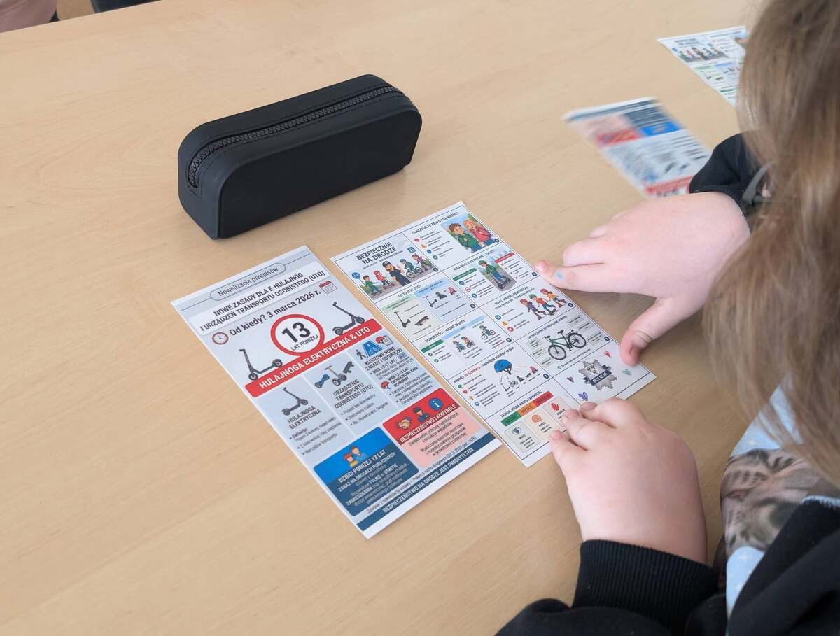 Szczególną uwagę zwrócono na aktualne przepisy prawa – w tym na ograniczenia dotyczące poruszania się hulajnogami elektrycznymi po drogach publicznych oraz kwestie związane z wiekiem użytkowników. Uczniowie dowiedzieli się również o nadchodzących zmianach – od 3 czerwca br. wprowadzone zostaną nowe regulacje dotyczące obowiązkowego korzystania z kasków ochronnych podczas jazdy na jednośladach.