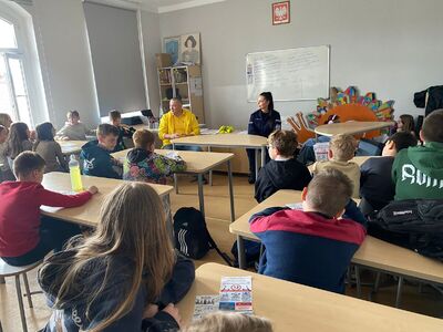 Zajęcia skierowane były do dzieci przygotowujących się do egzaminu na kartę rowerową. Podczas spotkania omówiono najważniejsze zasady bezpiecznego poruszania się po drogach, ze szczególnym uwzględnieniem rowerzystów oraz użytkowników hulajnóg elektrycznych.