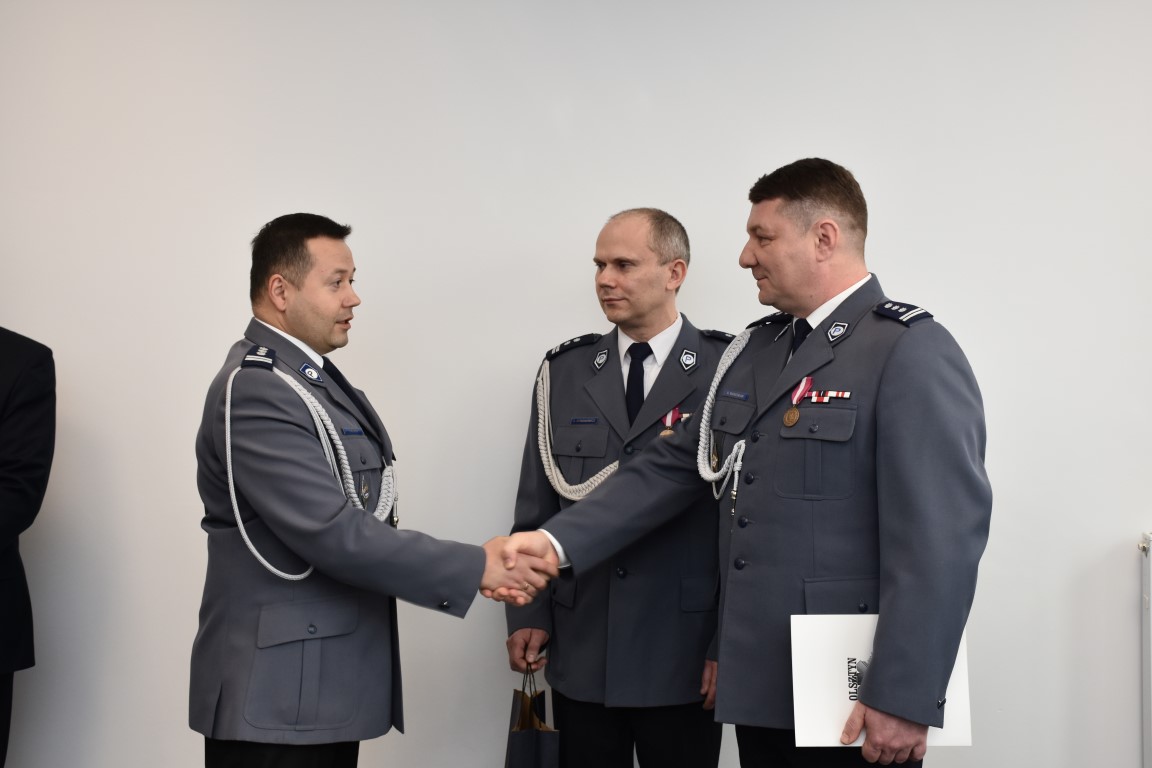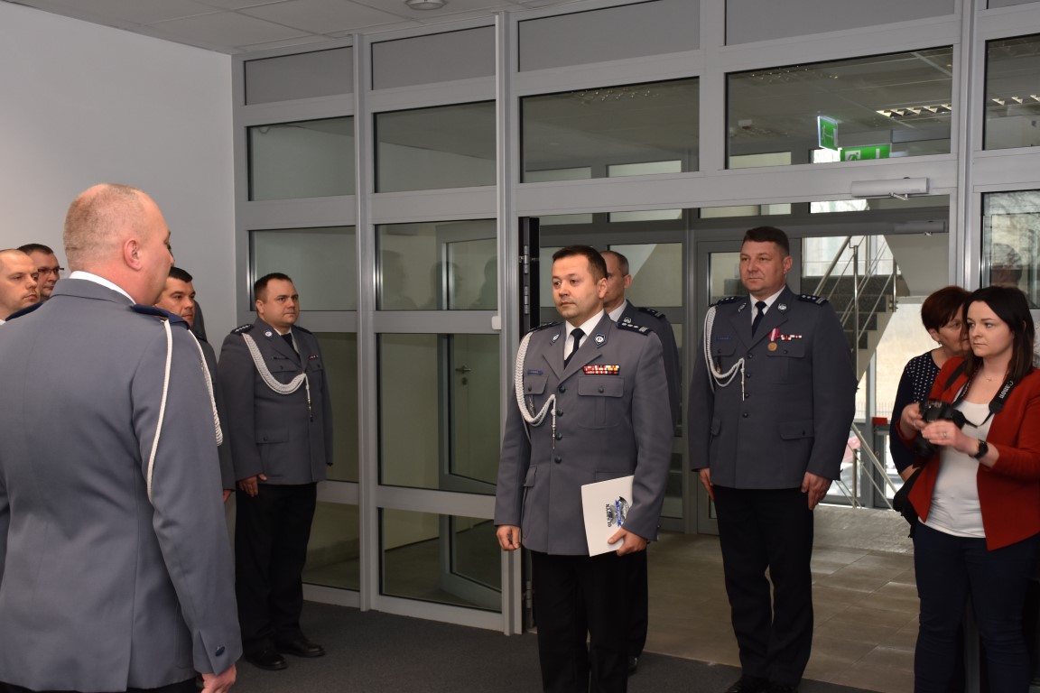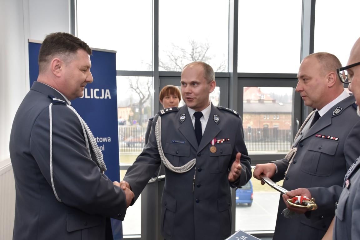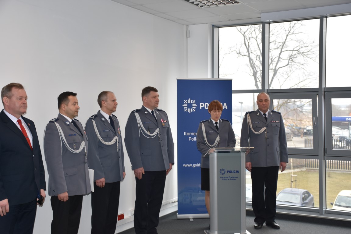 Komendant Wojewódzki Policji w Olsztynie insp. Tomasz Klimek, w swoim wystąpieniu podziękował odchodzącemu ze stanowiska insp. Robertowi Marciniakowi za wspólną służbę, podkreślił profesjonalizm i doświadczenie insp. Roberta Marciniaka, które były podstawą do powierzenia mu stanowiska Komendanta Powiatowego Policji w Gołdapi. Jednocześnie podziękował za realizowanie zadań na wysokim poziomie, owocną służbę oraz za profesjonalizm i przyjazną atmosferę pracy.