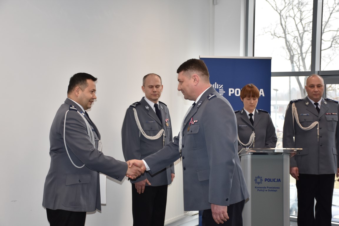 Komendant Powiatowy Policji w Gołdapi podziękował władzom samorządowym za pomoc i zrozumienie okazane podczas jego służby. Podziękował wszystkim policjantkom, policjantom oraz pracownikom za profesjonalną i pełną poświęcenia służbę, które przyczyniły się do sukcesywnego ograniczania przestępczości i wzrostu społecznego zaufania do naszej formacji.