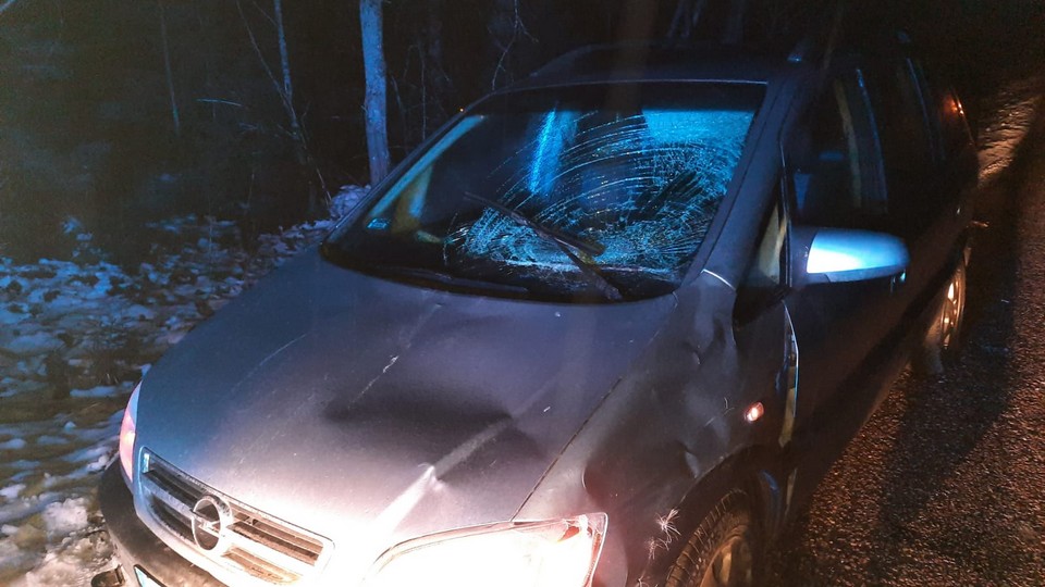 Zniszczony opel to skutki wtargnięcia kilkusetkilogramowego łosia wprost przed samochód osobowy. Do zdarzenia doszło wczoraj popołudniu na drodze w pobliżu miejscowości Rapa w gminie Banie Mazurskie. Policjanci apelują o ostrożność.