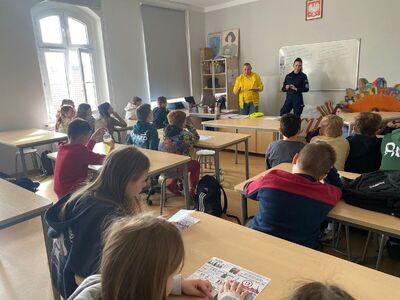 W poniedziałek policjantka z Komendy Powiatowej Policji w Gołdapi ponownie spotkała się z uczniami klasy czwartej Szkoły Podstawowej nr 1 w Gołdapi. W działaniach profilaktycznych towarzyszył jej przedstawiciel Rowerowej Gołdapi – Jacek Rakowski.